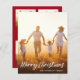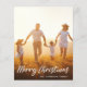 Grußkarte mit dem Foto "Frohe Weihnachten" in einem weißen Skriptüberlagerungsformat. Personalisieren Sie mit Ihrem Namen in der modernen weißen Typografie. Auf der Rückseite, fügen Sie 3 zusätzliche Fotos und Ihren Urlaub Gruß.