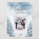 Wasserfarbener Winterwald als Hintergrund. Personalisieren und fügen Sie Ihren Familiennamen und ein Foto. Schneeüberlagerung. Happy Holidays geschrieben mit einem trendig handhabbaren Style Skript. Zurück: Fügen Sie Ihre Nachricht und Namen hinzu.