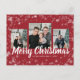 Feiern Sie die Urlaubssaison mit dieser roten und weißen Schneeflocke-Postkarte, die drei Fotos vorne und eines noch hinten zeigt. Der kühne rote Hintergrund und weiche Schneeflocken bringen eine fröhliche und festliche Touch zu Ihren Urlaubsplänen, während das Multi-Foto-Layout Ihnen erlaubt, mehr Erinnerungen mit Lieben zu teilen. Diese Postkarte ist ideal für alle, die eine persönliche und stilvolle Botschaft senden möchten, damit sich jeder Empfänger etwas naher an die Magie der Saison anfühlt. Teilen Sie Ihre Freude mit einer Karte, die die Wärme und das Wunder der Ferien einfängt.