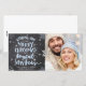 Senden Sie Ihre Foto Holiday Grüße mit dieser bearbeitbaren Foto Grußkarte. Schnee und Kalkboard Hintergrund.