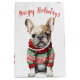 Weihnachts Französischer Bulldog in Schneeflocken Mittlere Geschenktüte