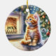 Weihnachts-Gelb-Kätzchen Maßgeschneiderte Datums-O Keramik Ornament