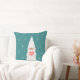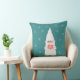 Niedlicher Weihnachtsgenom und Schneeflocken auf aquamarinem Kissen.