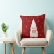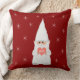 Niedlicher Weihnachtsgnome und Schneeflocken auf krummelrotem Kissen.