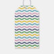 Entworfen, um auf die Grußkartenkollektion "Happy Merry Wavy" abgestimmt zu werden, zeigt dieses verspielte Geschenk-Anhänger-Motiv einen dekorativen, wellenförmigen Rahmen. Der Gruß "Happy Merry Everything" ist ein nicht-traditioneller Gruß, der auf jedes Fest während der Feiertage angewendet werden kann. Die Worte sind in verschiedenen Farben gestaltet, um dem Design eine spielerische Note zu verleihen. Direkt unter dem Gruß befindet sich ein kleines Herz und Platz für den Namen des Kunden. Die Rückseite des Anhängers zeigt ein passendes wellenförmiges Muster.