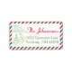 Eine niedliche Vintage Luftpost-Adressetikette mit einem Glitzer, der rot und grün diagonal Streifen Rand. Vintage Briefmarke und Weihnachtsbaum-Briefmarke auf der links Seite. Personalisieren Sie Ihre Rücksendeadresse.
