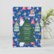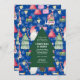 Nehmen Sie an einem Weihnachts-Gnome für das Abendessen während der Ferienzeit teil. Die Einladung enthält ein blaues Hintergrundmuster mit Zwergen, Geschenken, Heiligen, Süßigkeiten, Weihnachtsbäumen und der Tasche des Weihnachtsmanns. Personalisieren Sie die Details auf dem großen grünen Baum in der Mitte der Einladung.