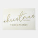 Dieses Design zeichnet sich durch eine Weihnachtskalligraphie-Schrift-Türmchen mit stilvollen modernen trendigen Segen, goldener Gradiententypografie, kreativen extravaganten Schriftzeichen, kreativen, vereinfachenden Eleganz-Trend, Weihnachts-Segen-Zitat-Sprichwort, Familienname personalisiert, Weihnachtsferien im Freien Begrüßungstür, simplizistische Eleganz golden Buchstaben