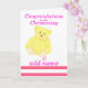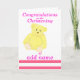 Weihnachtskarte, Baby tragen den Namen vorne und jede zusätzliche Nachricht im Inneren. Ein Teddy mit rosa Text und Streifen, blauen Streifen und Textversion für einen Jungen.