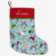 Niedliche Weihnachtshunde in festlichen Urlaubssoutien. Italienische Windhunde mit vielen Fellfarben tragen Weihnachtsmannmützen, Anthelfer, Pullover mit verstreuten Ziergegenständen individuelle Name Weihnachtsfest Strumpf.