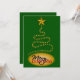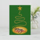 Abstrakter Weihnachtsbaum © Sunny Mars Designs. Individuell gestaltbare Grün- und Goldweihnachtseinladungen oder lädt mit einem abstrakten Weihnachtsbaum aus Sternen und einem großen Stern oben ein, mit den Worten "Frohe Weihnachten" unten.