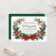 Ideal für ein Party im Dezember oder zu Weihnachten, bietet diese Einladung einen handgezeichneten Kranz aus festlichem Grün, roten Beeren und Poinsettias, die alle mit einem fröhlichen roten Bogen verbunden sind. Die dekadenten Blätterrahmen sind leicht zu gestalten und machen diese Einladung zu einer großartigen Wahl für Ihre nächste Feier.