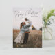 Ein handgeschriebener froher Weihnachten Gruß auf der Vorderseite und Happy New Year auf der Rückseite. Platz für ein Single-Foto auf jeder Seite dieses Designs. Eine einfache und doch stilvolle Urlaubsfotokarte, die für Ihre Personalisierung vorbereitet ist. Entworfen von Lisa McLean Design.