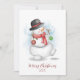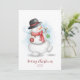 Weihnachts-Grußkarte mit Wasserfarben-Schneemann. Verbringen Sie ein schneereicheres und kühleres Weihnachten!