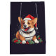 Weihnachts-Happy Corgi in Weihnachtsmannmütze mit Mittlere Geschenktüte