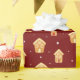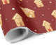 Weihnachts-Haus Gingerbrett auf dunkelrotem Hinter Geschenkpapier