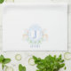 Dieses Weihnachtsküchentuch hat ein prächtiges, altmodisches Design mit einem Weihnachtsreh-Wappen mit einem blauen Monogramm-Brief in der Mitte. Sie können mit Ihrem Initial und Namen personalisieren