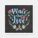 Hirschgeweihe mit dem Text "Peace Liebe Joy", rote Poinsettia, Heilige, Beeren und Schneeflocken auf schwarzem Hintergrund. Die Hintergrundfarbe kann geändert werden.