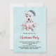 Weihnachts-Party Einladung mit einem whimsikalen und niedlichen Aquarell-Gemälde eines Husky-Hundes mit blauer Weihnachtsmannmütze.