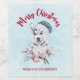 Flaschenetiketten mit einem whimsikalen und niedlichen Aquarellbild eines Husky-Hundes mit blauer Weihnachtsmannmütze.
