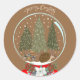 Ein Weihnachtsaufkleber mit einem Igel in einer Schneekugel.