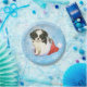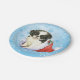 Feiern Sie die Urlaubssaison mit einem niedlichen japanischen Chin-Welpen, der in einer Weihnachtsmannmütze inmitten von Schneeflocken sitzt. Gute Ferien!