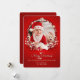 Eine wunderschöne, rote Weihnachtskarte mit einem runden Foto, das mit Vorhängen und Wirbel bestickt ist. (<a href="http://www.freepik.com/free-photo/little-girl-dressed-in-santa_965215.htm">Designed by Freepik</a>()<a href='http://www.freepik.com/free-vector/christmas-background-design_989829.htm'>Designed by Freepik</a>). <br/>()<br/>Die Karte lässt sich einfach mit Ihrem Text, Schriftart, Schriftart, Papierform und der Auswahl von sechs Papiertypen anpassen.<br/>() Nicht genau das, was Sie suchen? Alle unsere Produkte können auf Ihre Bedürfnisse zugeschnitten werden, ohne Aufpreis.<br/>()<br/>Kontaktieren Sie uns einfach unter heartfelthelper@gmail.com<br/>() Koordinierung der Produkte zur Verfügung: frag uns einfach!