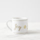 Diese Espresso-Tasse ist weiß mit goldfarbenem Text und Snowflake-Design mit pinstripe Akzent oben und unten. Text in extravagant lustiges Skript von "Joy". Passen Sie dieses Objekt an oder kaufen Sie es wie geplant.