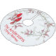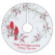Dieser Weihnachtsbaumrock zeigt zwei rote Kardinäle, die im Schnee auf Beerenästen sitzen. Personalisierbarer Gruß und Familienname.