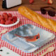 Weihnachts-Kardinal mit den Grüßen der Saison Pappteller