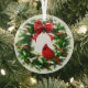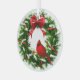 Weihnachtsglasverzierungen werden hier mit festlichem Kranz und Kardinal gezeigt. Passen Sie dieses Objekt an oder kaufen Sie, wie es ist.