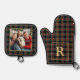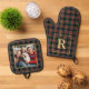 Weihnachts Kariertes Monogram Gold Foto Ofenhandschuh & Topflappen-Set