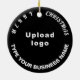 Frohe Weihnachten! Keramik mit fröhlichen Weihnachtsgrüßtexten, Ihrem Firmennamen und Logo. Designs sind weiße Texte auf schwarzem Hintergrund und auf Kreisform. Ornament zur Dekoration des Weihnachtsbaumes in Ihrem Geschäft, Shop oder Büro. Ornament, um Ihre Kunden in dieser Feriensaison visuell zu begrüßen und Ihr Unternehmen zu werben oder Ihren Markennamen zu fördern. Passen Sie es an und nutzen Sie es, um Markenbewusstsein zu schaffen. Bitte Karo nach dem Hochladen des Logos und der Eingabe Ihres Firmennamens. Wenn Ihnen das Aussehen gefällt, können Sie jetzt Ihre Bestellung aufgeben. Wenn Sie das Logo und die Texte verändern und verschieben müssen, um auf diesen Schmuck oder auf andere Stile, die Sie wählen werden, passen Sie bitte das Design-Tool an. Sie können auch andere Änderungen vornehmen, die Ihren Wünschen entsprechen, z.B. die Farbgestaltung des Ornaments, die Farbe des Schriftartes und der Stil des Schriftartes. Frohe Weihnachten! Wir wünschen Ihnen mehr Umsatz in dieser Feriensaison.