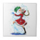 Weihnachts Keramik Tile mit Snowman und Girl Dance Fliese