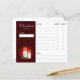 Hilfreiche Checkliste für Weihnachtsgeschenke für Freunde und Lieben. Das Design präsentiert Desteis festliche Illustration von Weihnachtskerzen zusammen mit einer Heiligen Weihnachtszeit-Pflanze. Der Titel lautet: "Weihnachts-Geschenkliste" und dann gibt es Platz für den Namen des Empfängers und einige Notizen. Es gibt auch Abschnitte für Geschenkideen, Preis, ob ein Geschenk gekauft wurde oder nicht und ob ein Geschenk verpackt wurde. Die Betonfarbe ist rot.