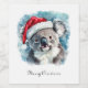 Aquarellmalerei eines Koala mit einem roten Winterhut im Weihnachtsstil