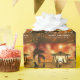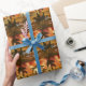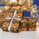 Personalisieren Sie dieses Weihnachtsverpackungspapier, indem Sie einen individuellen Gruß und den Namen Ihrer Familie hinzufügen. Das Design besticht durch eine traditionelle Krippenlandschaft mit "Ruhm zu Gott", die in eleganter goldfarbener Kalligraphie-Schrift dargestellt ist. Einfach anzupassen. Gute Ferien!
