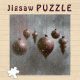 Entspannendes Puzzle - Auf grauem Hintergrund hangende Kupferweihbaumchen - Dieses schöne, lebendige, handgefertigte Gemälde zeigt ein paar kupfer-farbene Weihnachtsbaumbläschen, die glänzen und glänzen. Die Hauptfarben sind Kupfer, Bordeaux, Lila, Grau, Braun. Gemütliches Urlaubssaison Puzzles