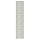 Ein Muster von Schneeflocken aus Kupfer auf einem weichen robinenblauen Tischläufer. Ideal für eine alternative Urlaubssaison.