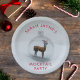 Santa Lama hat ein kleines Party für mich. War ein schreckliches gutes Mädchen. Fügen Sie Ihre Party-Details zu dieser festlichen Schneeszene Papier Platte mit einem Santa Llama stand in einem Glas-Ornament.