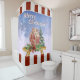 Dieser Duschvorhang ist festlich und fröhlich! Es ist mit einem Aquarellbild eines Lebkuchenhauses auf einem Haufen von Evergreens mit roten Beeren und einem roten Bogen versehen, während hinter dem Haus ein verzierter Weihnachtsbaum steht. Ein schneebedeckter Hintergrund bringt alles zusammen. Hinter dem Design verbirgt sich eine dunkelrote Streifen und ein weicher grauer Hintergrund.