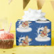 Weihnachten Lebkuchen Mann tauchen in Milch auf einem blauen Hintergrund. Die Hintergrundfarbe kann geändert werden.