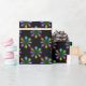 Farbenfrohe Weihnachtsschnur in Schneeflockenmuster auf schwarzem Hintergrund.
