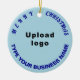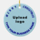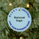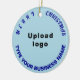 Frohe Weihnachten! Keramik mit fröhlichen Weihnachtsgrüßtexten, Ihrem Firmennamen und Logo. Designs sind dunkelblaue Texte auf hellblauem Hintergrund und auf Kreisform. Ornament zur Dekoration des Weihnachtsbaumes in Ihrem Geschäft, Shop oder Büro. Ornament, um Ihre Kunden in dieser Feriensaison visuell zu begrüßen und Ihr Unternehmen zu werben oder Ihren Markennamen zu fördern. Passen Sie es an und nutzen Sie es, um Markenbewusstsein zu schaffen. Bitte Karo nach dem Hochladen des Logos und der Eingabe Ihres Firmennamens. Wenn Ihnen das Aussehen gefällt, können Sie jetzt Ihre Bestellung aufgeben. Wenn Sie das Logo und die Texte verändern und verschieben müssen, um auf diesen Schmuck oder auf andere Stile, die Sie wählen werden, passen Sie bitte das Design-Tool an. Sie können auch andere Änderungen vornehmen, die Ihren Wünschen entsprechen, z.B. die Farbgestaltung des Ornaments, die Farbe des Schriftartes und der Stil des Schriftartes. Frohe Weihnachten! Wir wünschen Ihnen mehr Umsatz in dieser Feriensaison.