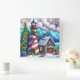 Weihnachts-Leuchtturm Nautical Coastal Mountain Quadratische Wanduhr