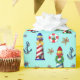 Dieses farbenfrohe Design zeichnet sich durch ein nautisches Weihnachtsmuster von Leuchttürmen mit Kränzen und Glocken, verzierten Ankern, festlichen Bojen, verstreut mit Urlaubsternchen und Muscheln aus.