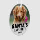 Personalisierte "Santa's Lieblings" Hunde Foto Ornament. Mit diesem spielerischen Ornament, das perfekt dazu geeignet ist, die liebliche Persönlichkeit Ihres Nachwuchses zu zeigen, verleihen Sie Ihrem Zimmer einen fröhlichen und Spaß. Auf der Vorderseite steht der festliche Text "Santa's Favorite" in schwarzen Schriftart zusammen mit dem Namen Ihres Hundes, der eine lustige Drehung zur Feier Ihres Furry-Freundes. Ein beliebtes Foto wird mit einem weichen, weißen Farbverlauf unten hervorgehoben, um einen sauberen und polierten Look zu erhalten. Die Rückseite zeigt ein paw print design mit einem Herz in der mitte für ein süßes Detail. Sowohl die Farbe des Schriftartes als auch der Pfotendruck können auf Ihren Stil angepasst werden. Dieser Sake ist ein wundervolles Geschenk für Hundefreunde - ideal für Ferien, Geburtstage oder einfach nur weil. Eine spielerische Art, den Charme Ihres Welpen zu feiern, sei es auf dem Weihnachtsbaum oder ganzjährig an einem besonderen Ort!