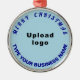 Frohe Weihnachten! Rundschmuck mit fröhlichen Weihnachtsgrüßtexten, Ihrem Geschäfts- oder Firmennamen und Logo. Design ist dunkelblaue Texte auf hellblauem Hintergrund. Ornament zur Dekoration des Weihnachtsbaumes in Ihrem Geschäft, Shop oder Büro. Ornament, um Ihre Kunden in dieser Feriensaison visuell zu begrüßen und Ihr Unternehmen zu werben oder Ihren Markennamen zu fördern. Passen Sie es an und nutzen Sie es, um Markenbewusstsein zu schaffen. Bitte Karo des Erscheinungsbildes nach dem Hochladen von Logos und Schriftzeichen. Wenn Ihnen das Aussehen gefällt, können Sie jetzt Ihre Bestellung aufgeben. Wenn Sie das Logo und die Texte verändern und verschieben müssen, um auf diesen Schmuck oder auf andere Stile, die Sie wählen werden, passen Sie bitte das Design-Tool an. Sie können auch andere Änderungen vornehmen, die Ihren Wünschen entsprechen, z.B. die Änderung der Hintergrundfarbe, der Schriftart und des Schriftartes. Frohe Weihnachten! Wir wünschen Ihnen mehr Umsatz in dieser Feriensaison.