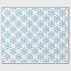 Modernes Weihnachtspapier mit hellblauen und weißen Schneeflocken.