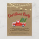 Weihnachts-Truck Eine fröhliche kleine Weihnachtsfeier - Unsere Weihnachtsfeier ist eine lustige Party Einladung, um Ihre Feierlichkeiten in dieser Ferienzeit zu versenden. Die Einladung enthält eine Aquarellfarbe, Vintager Pick-up LKW trägt Weihnachtsbäume frisch vom Bauernhof. Eine Reihe Vintager Lichter hängen über dem Kopf. Die Rückseite der Einladung ist stilvoll rot und grün kariert. Die Einladung ist Teil einer Sammlung. Designed by Beverly Arena-Bainbridge Homespun Hütte Designs E: homespuncottagedesigns@gmail.com